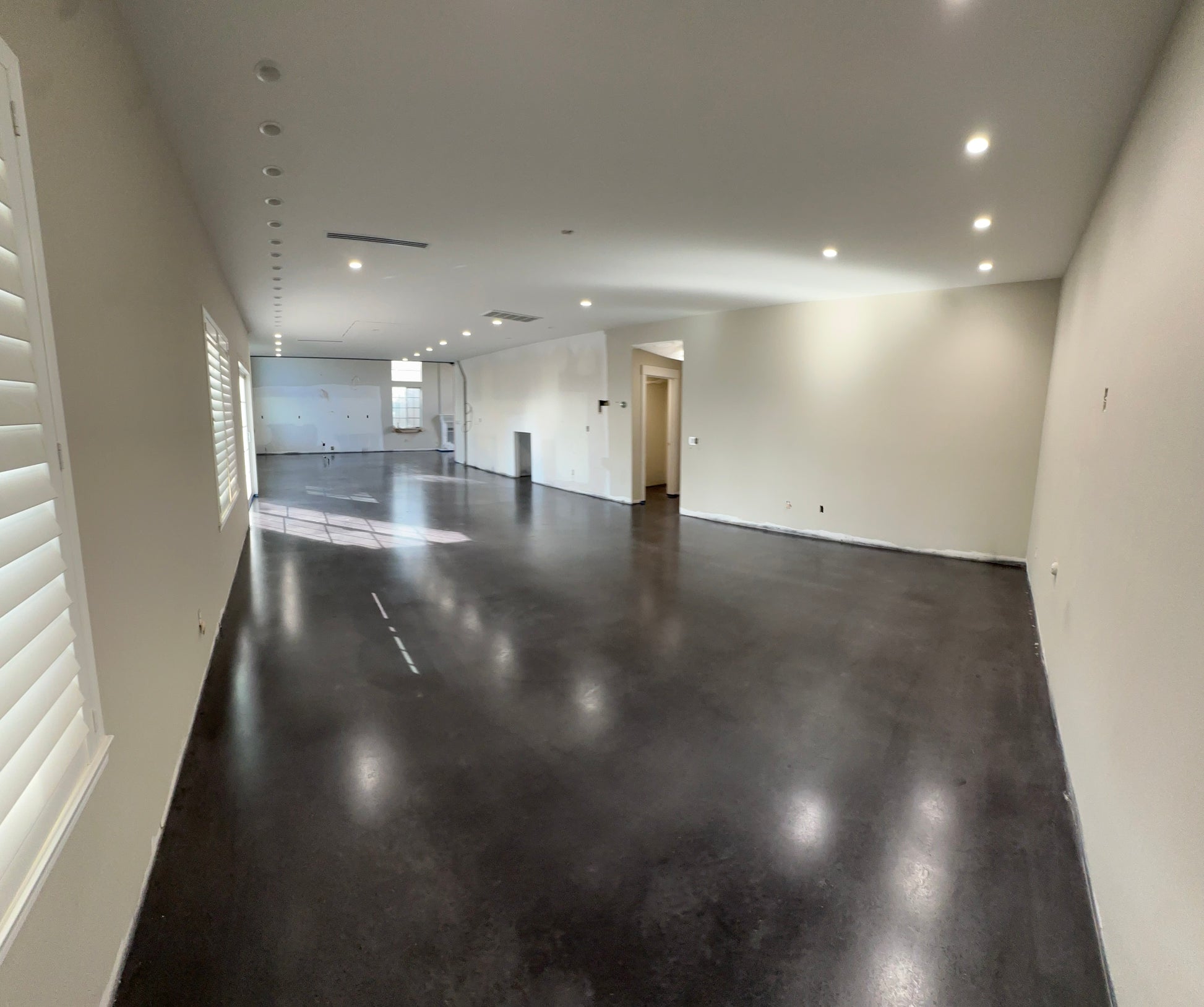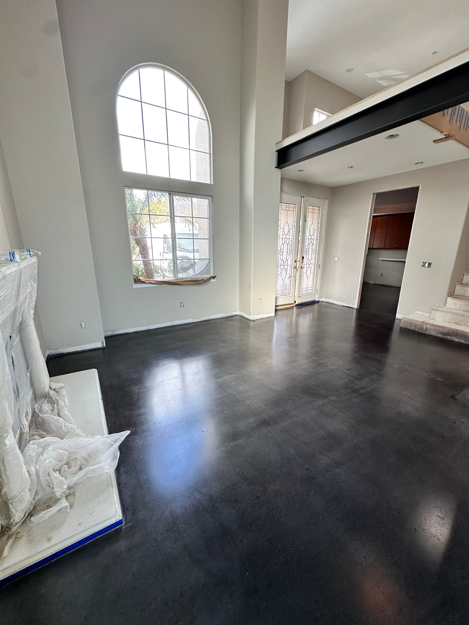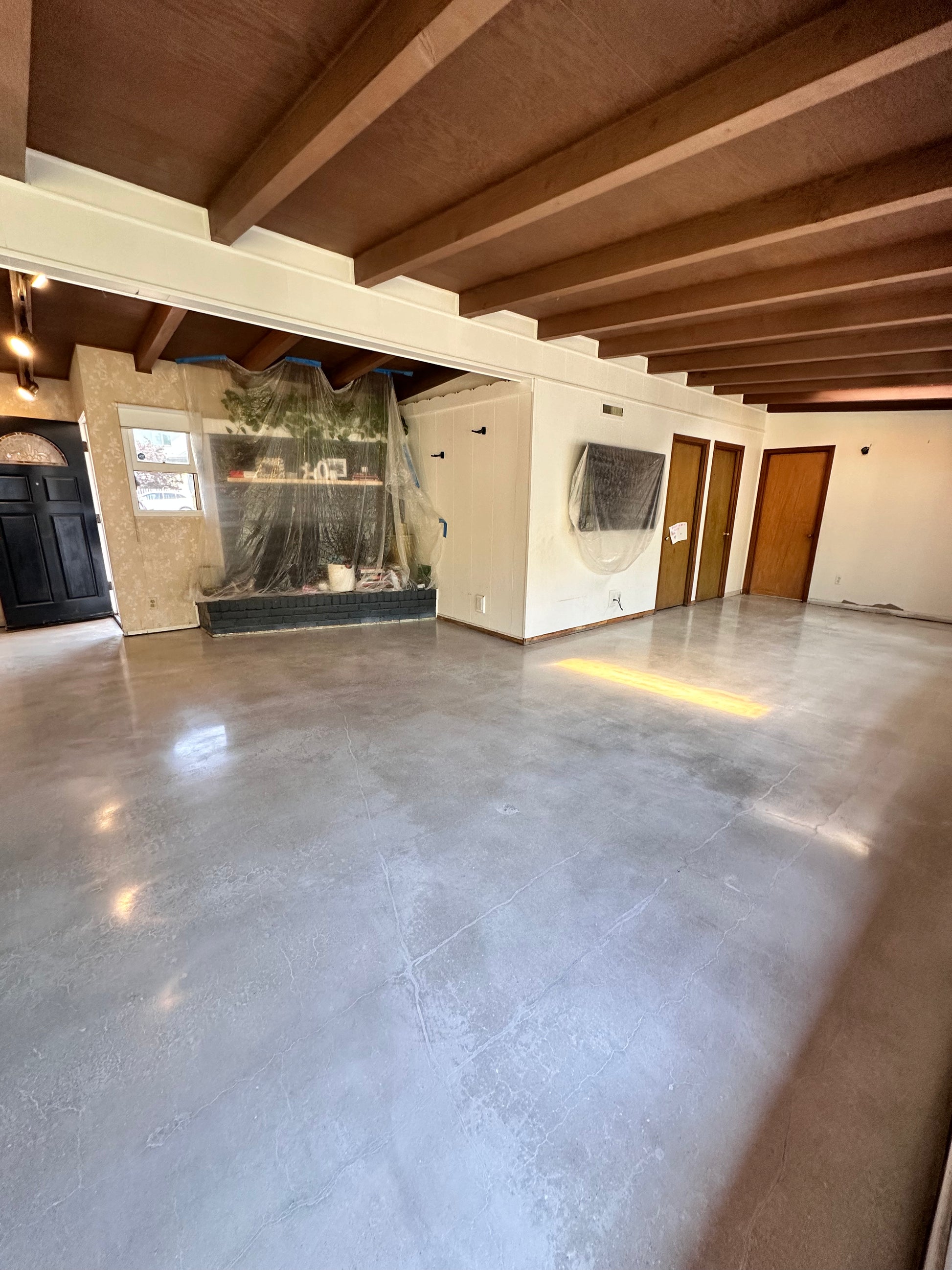 Low maintenancePolished concrete floors are easy to clean and don't require waxing or stripping like other floors. They only need occasional mopping and daily dusting or sweeping to prevent dirt buildup. Weekly damp mopping can remove water marks, scuffs, and smudges, and restore shine.